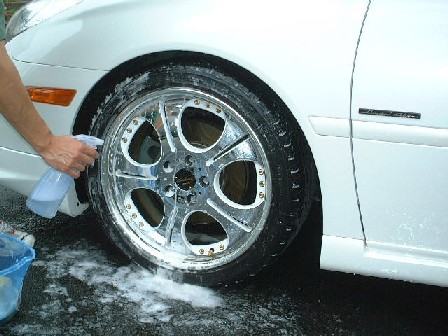 | 業務用洗剤を使用し、 ホイルやタイヤハウスまで 綺麗に洗います。 |